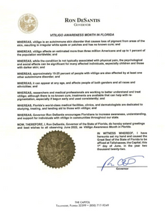 Junio es el mes de concientización sobre el vitíligo. Le recomendamos que envíe la proclamación también a las oficinas de su gobierno local.